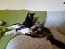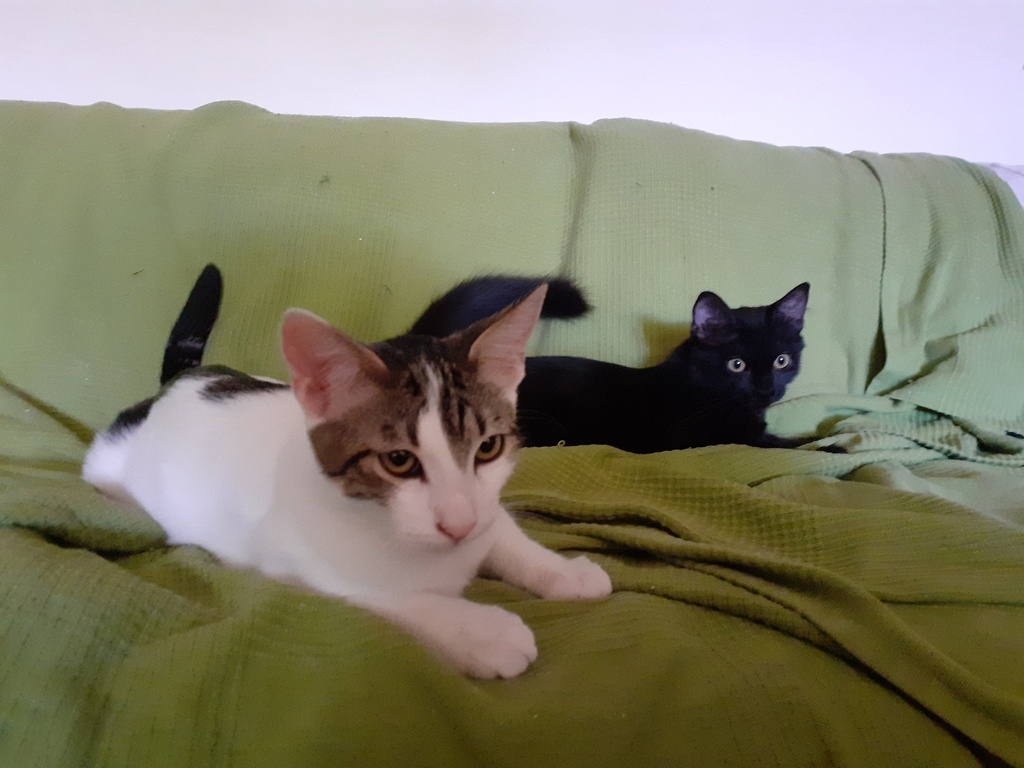 mamá, Xia, una gata muy jovencita. Desde el día que llegaron se han mostrado